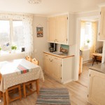 Här finns spis med ugn, kyl och frys, mikro, vattenkokare, elvisp och kaffebryggare.