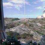 Består av naturtomt dvs. berg. Det finns plattor runt huset och en liten gräsmatta. Trädgårdsmöbler, enkel grill, tvättstreck för badkläder, parkeringsplats för en normalstor bil finns. Från tomten ser du havet och då speciellt från berget på baksidan.